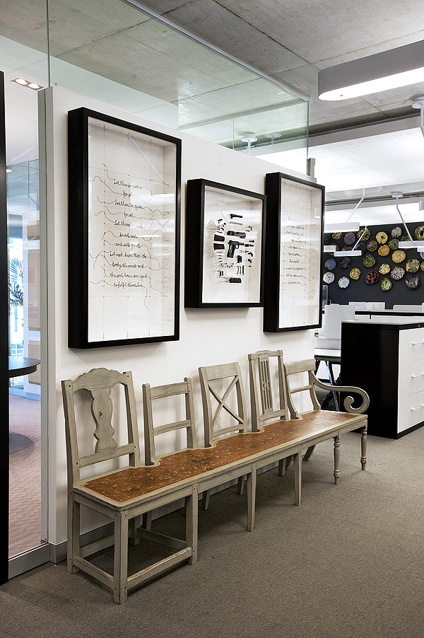 “He likes challenging designs,” says Trevyn. The owner adds that he loves the idea of a stimulating and ever-changing working space. “Art and beautiful things put everything in perspective.”