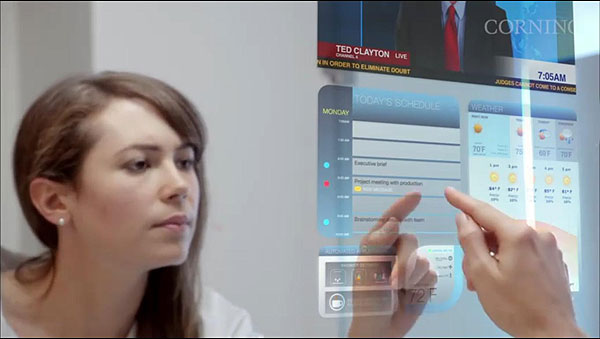 Can you imagine organising your daily schedule with a few touches on your bathroom mirror? Chatting with faraway relatives through interactive video on your kitchen counter? Reading a classic novel on a wisp-thin piece of flexible glass?