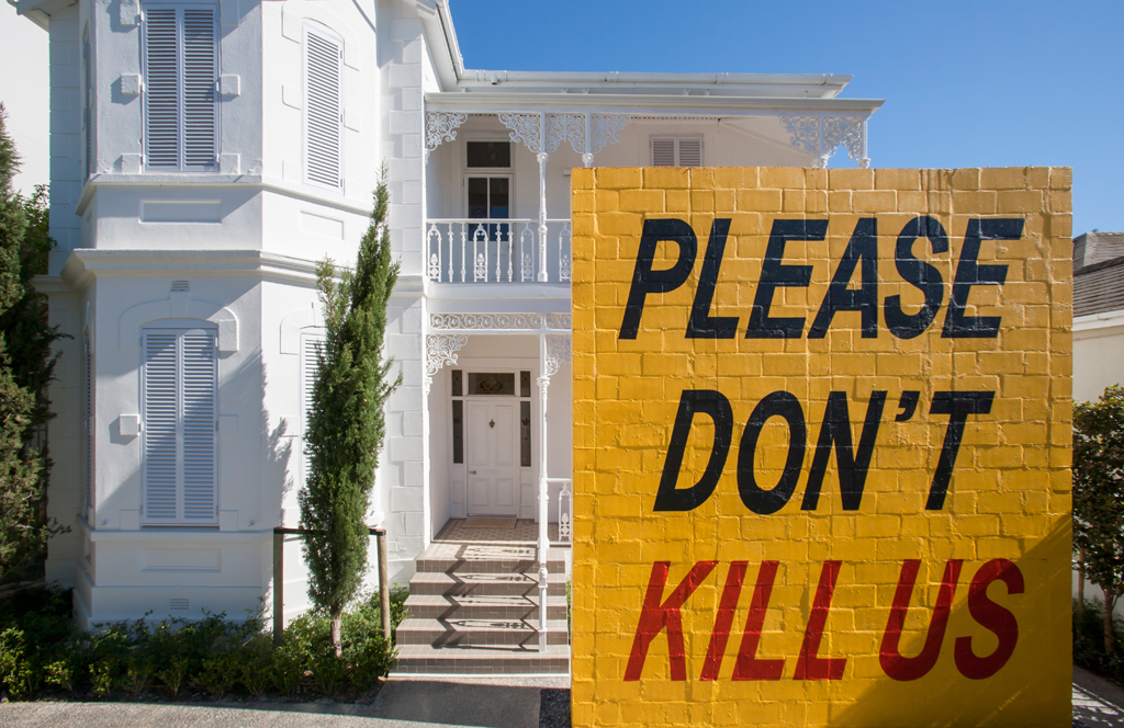 The museum is located in a beautiful old repurposed Victorian house, built in 1890, on New Church Street in Cape Town. When it first opened, passersby were confronted by a massive yellow wall with the words Please Don’t Kill Us, a sculpture by artist Cameron Platter. As of this week, a new sculpture by artist Kyle Morland has been erected in the front yard.