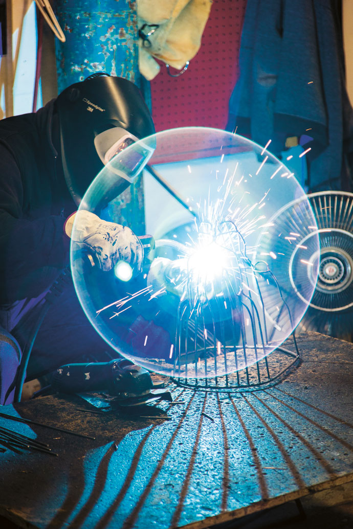 He then works with welders like Wellington Moyo (pictured) to make the steel frame that will determine the physical form of the object. Because none of the design and planning is done on computer, no two works are the same.