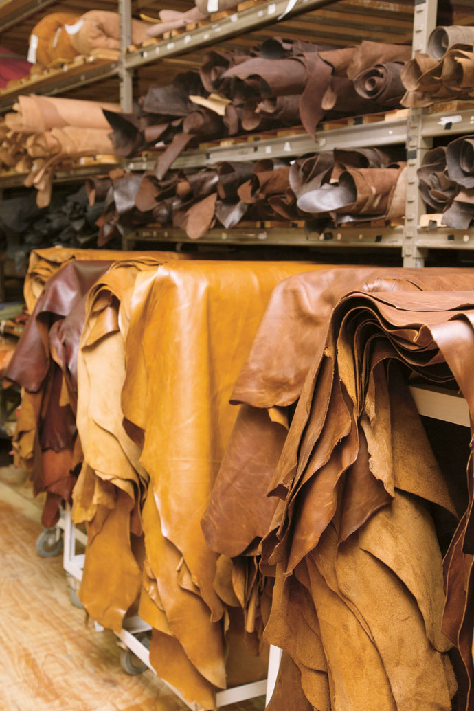The leather pieces are hand-stitched directly onto the frame by the Woodhead’s team.