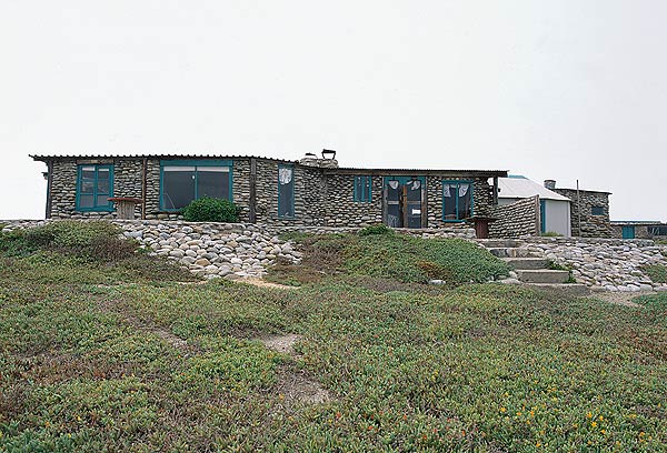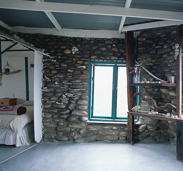 We stare in wonder: 11 simple stone cottages are strewn on a rocky outcrop, almost something you’d come across in the pages of Lloyd Kahn’s photographic book Home Work: Handbuilt Shelter. Basic, but beautiful, each with an unsurpassed view over the rough coastline and endless water.