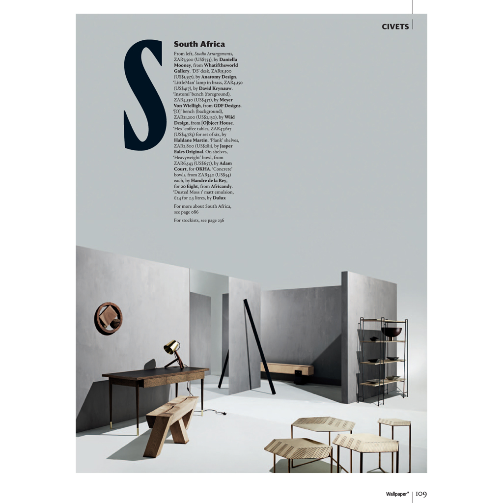 In turn, Wallpaper magazine took a broader look at South Africa as a whole – SA forming the S in their CIVETS (Colombia, Indonesia, Vietnam, Egypt, Turkey and South Africa) focus. States Wallpaper: “The term CIVETS was minted in 2009 when each of these countries seemed primed for economic super-growth. Since then, Egypt has flirted with civil war and Turkey has seen serious civil unrest. However behind the top line market figures, things still advance and their design scenes grow more confident.”