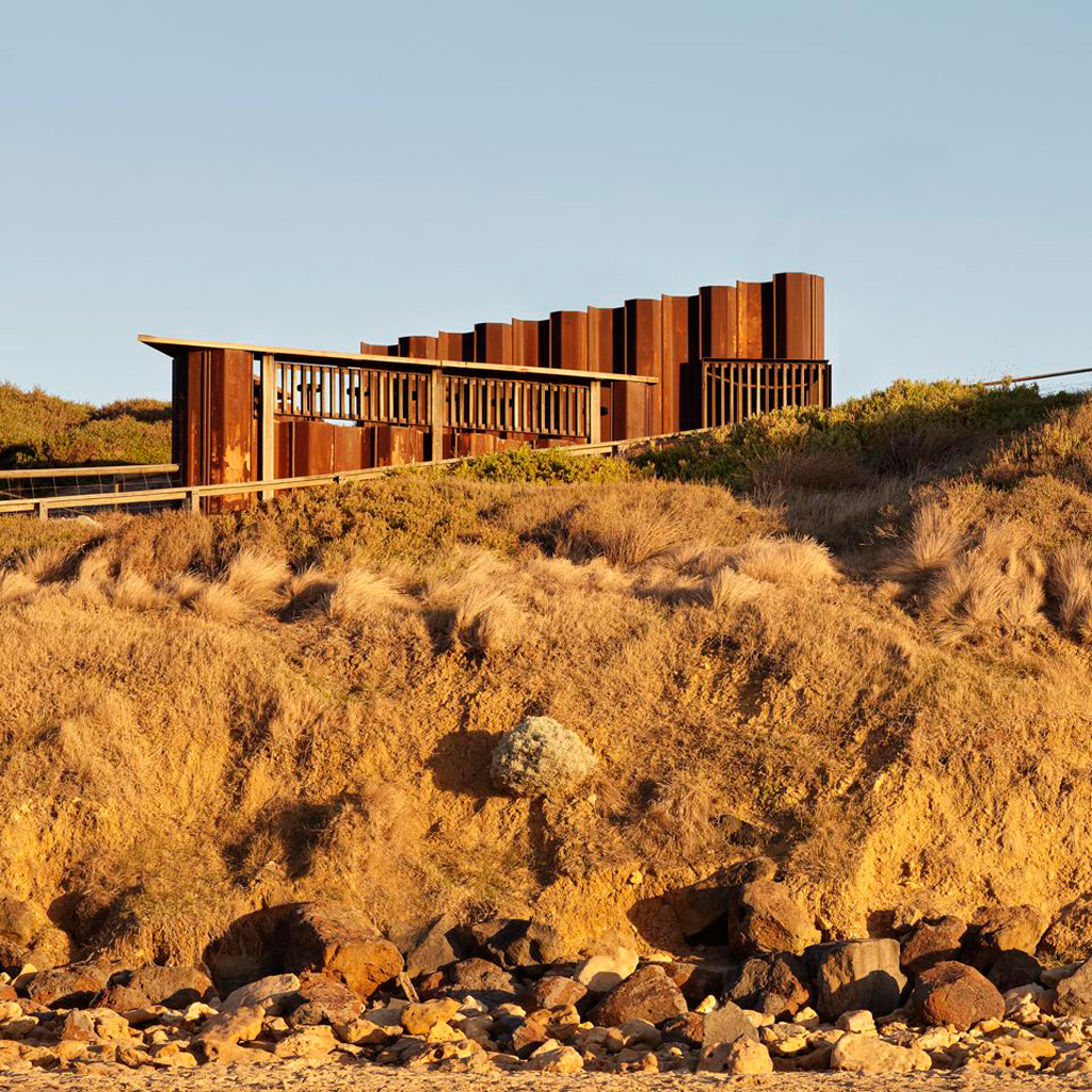 Third Wave Kiosk (Australia) : The winner of the Best Canteen title was designed by Tony Hobba Architects. The aim was to encompass environmental consciousness, engage with beach culture, and be resilient to natural forces while being both modest and elegant in its simplicity.| -