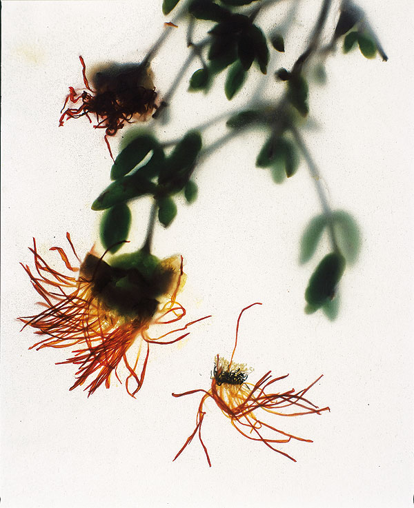 Some leaves are round, some cigar-shaped; others, like the beak of a tortoise, smooth or stippled. And then you have the soutslaaibos or Mesembryanthemum: ‘mesembria’ meaning ‘midday’ and ‘anthemon’ meaning ‘flower’. Its leaves are covered in sparkling papillae, hence its species name crystallinum.
