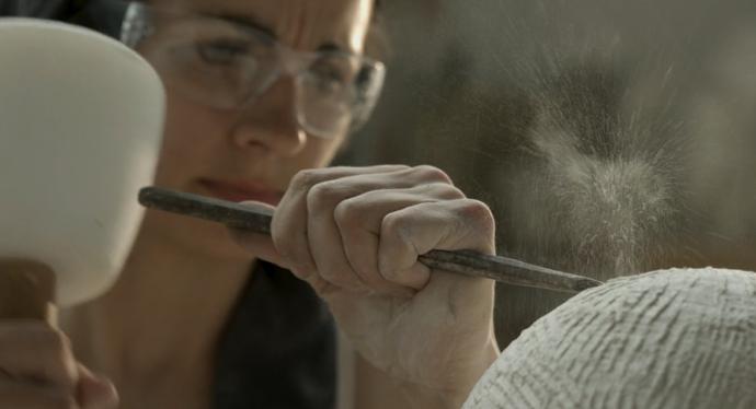 Watch the clip above as she carves a portrait from scratch in three weeks.