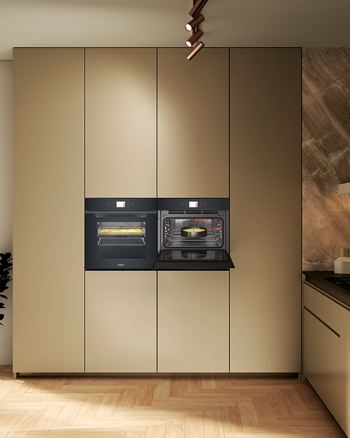 Whirlpool’s new W11 Collection unveils the beauty of Intuitive Home Solutions that allow you to free up your mind, thanks to innovative and intelligent features designed to simplify daily life and ensure flawless results. With the well-known Cook4 function in the oven and the new Cook 3 in the oven & microwave combi, you can now prepare up to 7 dishes simultaneously, without mixing aromas or flavours. This unique and innovative Cook 7 solution brings together two appliances with a fully matching design. A modern, responsive full-touch display provides effortless navigation, giving you complete confidence and control in the kitchen.