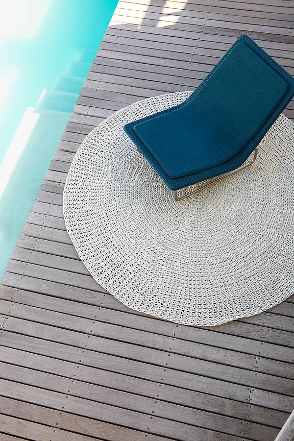 The Robala rug is hand-woven from custom-braided WeatherTech fibre, enabling it to withstand harsh outdoor conditions.