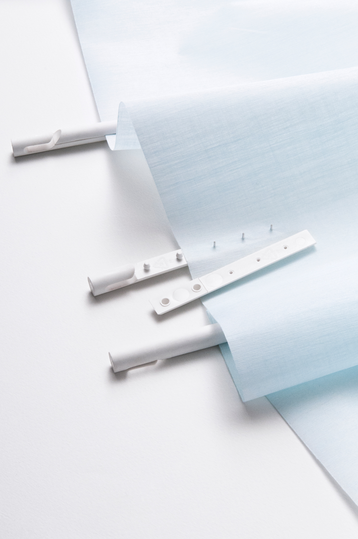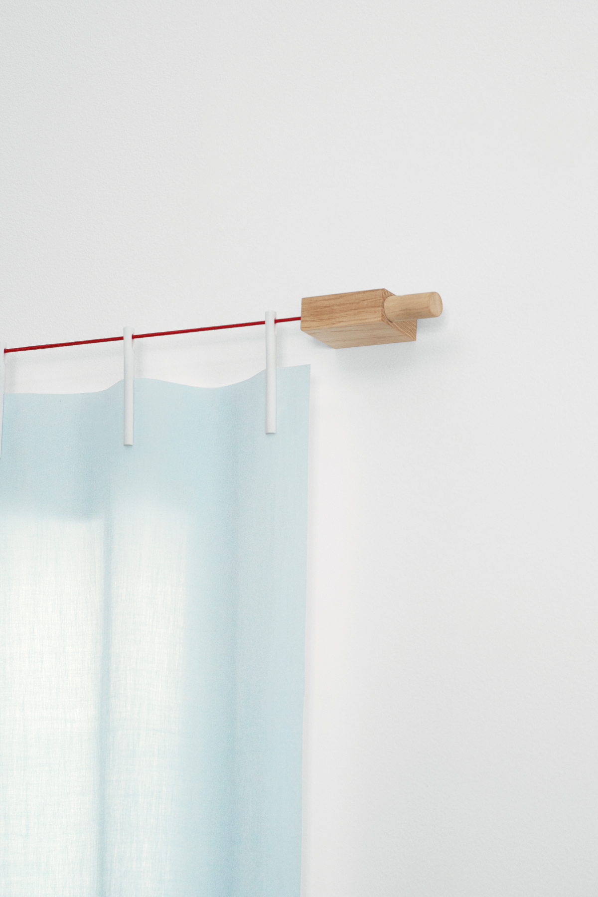 Then you look at the Ready Made Curtain system that French design brothers Ronan and Erwan Bouroullec conceptualised for Kvadrat and you wonder what we’ve been thinking for centuries. Clearly we haven’t been thinking at all! This simple system entails two mechanisms that are attached to the wall, a cord that is tightened by being wound around the mechanisms, a piece of fabric that can be cut to size without any sewing, and pegs that attach the fabric to the cord.