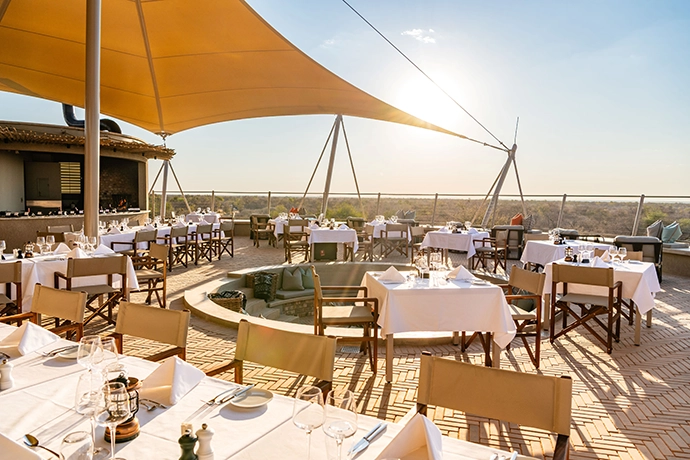 Perched eight metres above the Namibian bushveld, SkyBoma – the latest addition to Mokuti Etosha – is unlike anything seen in Africa’s safari tourism landscape. Developed by O&L Leisure, this innovation blends elevated dining, indigenous storytelling, and dramatic wilderness views.